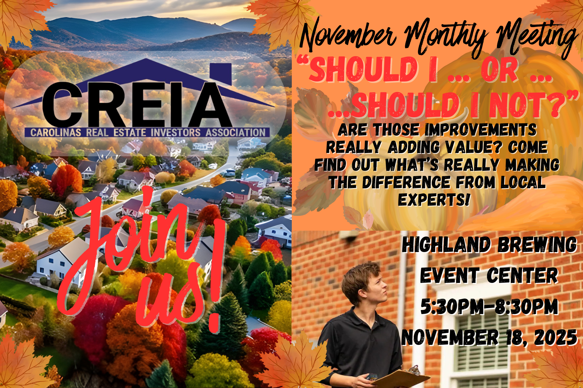 Join us for a special meeting dedicated to determining what property improvements and strategies are truly bringing value in todays market. This meeting will feature a panel of local experts discussing what you can do to maximize value and return from your portfolio! Don't forget to follow us on Instagram!